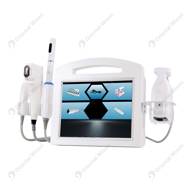 ขายดีที่สุด 4D HIFU V max Liposonix Face Lifting RF Microneedle Fractional Acne Removal Beauty Machine เป็นเทคโนโลยีที่มีด้ามจับหลายแบบรวมถึง HIFU, Vmax, RF microneedle, Lipoisonix ในเครื่องเดียว เครื่อง 4D HIFU V max Liposonix Face Lifting RF Microneedle Fractional สามารถทำงานได้แม้ในพื้นที่ขนาดเล็กที่ด้ามจับ 3D HIFU ไม่สามารถกำหนดเป้าหมายได้อย่างแม่นยำ หัว v-max มีเส้นผ่านศูนย์กลางเพียง 3-5 ซม. และมีการออกแบบเป็นวงกลม และยังมีช่องคลอดอีกแบบหนึ่งซึ่งใช้ทาในชั้นช่องคลอด แม้ว่าการรักษานี้อาจไม่ถาวร แต่ก็สามารถให้ผลลัพธ์ทันทีได้นานถึง 3 เดือน ซึ่งหมายความว่าไม่จำเป็นต้องทำหัตถการอื่น อัลตราซาวนด์ที่มีความเข้มสูงได้รับความนิยมเพิ่มขึ้นเนื่องจากความต้องการที่เพิ่มขึ้นในการยกกระชับผิวโดยไม่รุกรานอย่างมีนัยสำคัญ 4D HIFU V max Liposonix Face Lifting RF Microneedle Fractional ไม่เพียงช่วยลดการปรากฏตัวของไขมันส่วนเกินในบริเวณต่างๆ เช่น แก้ม คางสองชั้น และแก้ม แต่ยังสามารถปรับรูปร่างด้วยด้ามจับ liposonix, V max สำหรับการรักษาทั่วใบหน้ารวมถึงรอบดวงตาด้วย , RF microneedle สำหรับรอยแตกลาย, สิว, การผลัดผิว ฯลฯ 1 เครื่องสามารถทำได้ 4 วิธีและราคาที่แข่งขันได้กลายเป็นอุปกรณ์พื้นฐานสำหรับคลินิกความงาม